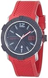 Item DescriptionCasual watch, Japanese quartz movement, Polished red/grey sword hands with luminous accents and white sweep seconds, Applied polished grey Arabic twelve, Applied polished grey baton markers, Small white Arabic numbers, White indices form surrounding minute track, Analog date aperture above six o’clock, Striated black dial with polished red logo applique, Striated red silicone strap with polished silver-tone stainless steel buckle, Black resin bezel with engraved Arabic numbers/baton markers/indices, Brushed silver-tone stainless steel round case, Textured black steel crown with logo, Stainless steel screw-down caseback, Mineral crystal, 50 meters/165 feet water resistant |