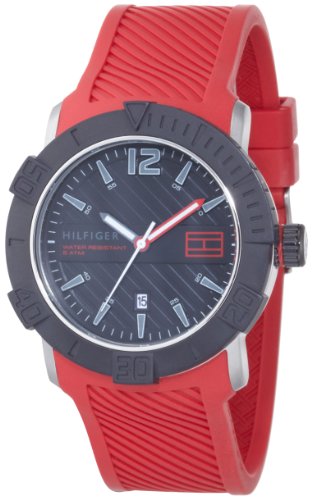 Tommy Hilfiger Item ID: #2197Tommy Hilfiger Men’s 1790736 Sport Black Dial Red Silcon Strap with Date Function WatchProduct Information: