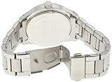 Item DescriptionCasual watch, Three-hand Japanese quartz movement marked by gunmetal hands with luminous accents and sweep seconds, Applied gunmetal Arabic numbers mark quarter hours, Crystal hour appliques, Black indices mark inner minute track, Polished steel bezel etched with minutes indicator, Polished silver-tone stainless steel large round case with steel crown, Stainless steel caseback, 30 meters/100 feet water resistant |