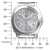 Item DescriptionSpecial design for big wrist guys. This nice timepiece offering silver-tone extra-long band with double-push-button clasp, round case with silver sunray dial, easy-to-read Arabic numerals display and printed tachymeter scale. It is also powered by precise Japanese-quartz movement. |