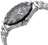 Item DescriptionSophisticated materials, a classic look, and technical excellence combine in the Victorinox Swiss Army Men’s Summit XLT Watch #241344. This timepiece offers a black dial with white Arabic numeral indexes, small Arabic numerals for tracking 24-hour time, a minute tracker, a date window at four o’clock, luminous hour and minute hands, and a white, easy-to-read second hand. This watch also offers a stainless steel unidirectional bezel that features a black finish and white Arabic numeral indexes at five-minute intervals. Its 39-millimeter stainless steel case includes a screw-in caseback, while the stainless steel band is held in place by deployment buckle clasp and comes with a diver’s extension. This Summit XLT watch offers the protection of shock-resistant mineral crystal. It is powered by Swiss quartz movement, and it is water resistant to 330 feet (100 meters). |