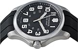 Item DescriptionFrom Victorinox Swiss Army, the Men’s Officer’s Gent Watch #241357 is an elegant pick for confident individuals. Featuring a black dial with contrasting Arabic numeral indexes, smaller numerals for tracking 24-hour time, luminous hands and a convenient date window at six o’clock, all framed by a stainless steel bezel, this timepiece is a sophisticated classic that’s easy to dress up or down. This Officer’s Gent Watch also offers a 40-millimeter stainless steel case with a screw-in caseback, the bold look of a black rubber band with a buckle clasp, and the protection of a scratch-resistant, anti-reflective sapphire crystal. As befits the Swiss Army tradition, this watch is made in Switzerland and makes use of precision Swiss analog quartz movement, and it is water resistant to 330 feet (100 meters). |