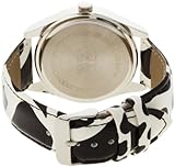Item DescriptionUnique design you ever seen – black and white giraffe pattern band with black stitching, featuring silver-tone round case, rhinestone accent bezel, silver sunray dial with a mix of silver Arabic numerals and dashes, buckle closure, also is powered by nice Japanese analog movement. |