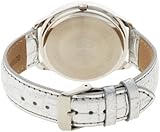 Item DescriptionLarge shiny silver-tone round case with 43.8 mm diameter, clear rhinestone accent bezel, unique designed dial with matte silver background and glitter accent paisley pattern, silver crocodile strap watch with buckle closure. This timepiece is powered by Japanese quartz movement. |