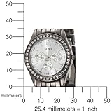 Item DescriptionPolished gun metal finish, silver dial with silver Arabic numeral 12 and dashes, shiny rhinestones accented bezel. This fashionable timepiece is powered by analog quartz movement. |
